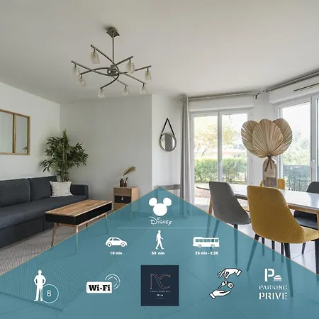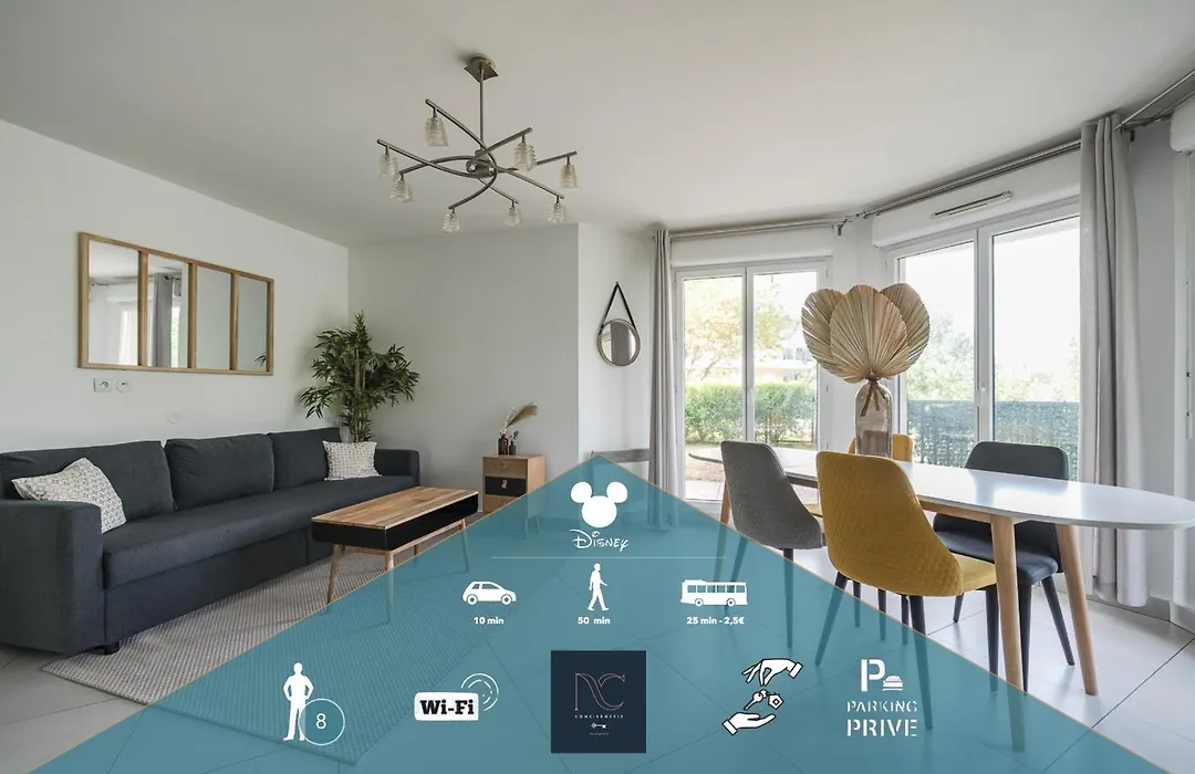 Disneyland-Paris 8Pers, Netflix, Wifi, Parking, Garden lägenhet är ett boende på 72 m^2, som erbjuder sina gäster vattenpark, soldäck och solterrass. Disneyland Resort Paris ligger 4 km från lägenheten, medan Montévrains hjärta ligger 2 km bort.